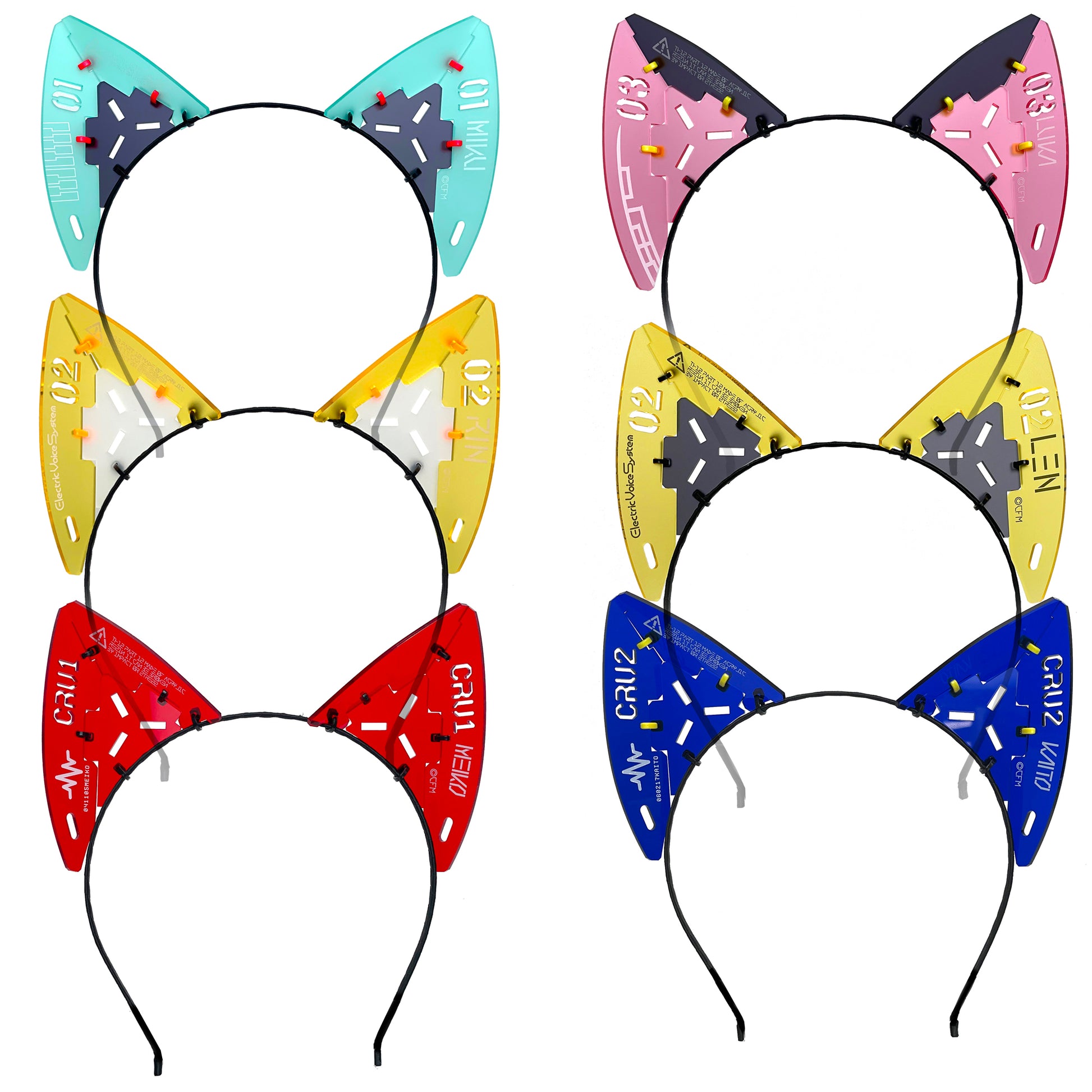平面で構成された硬質な近未来的デザインのネコミミユニット