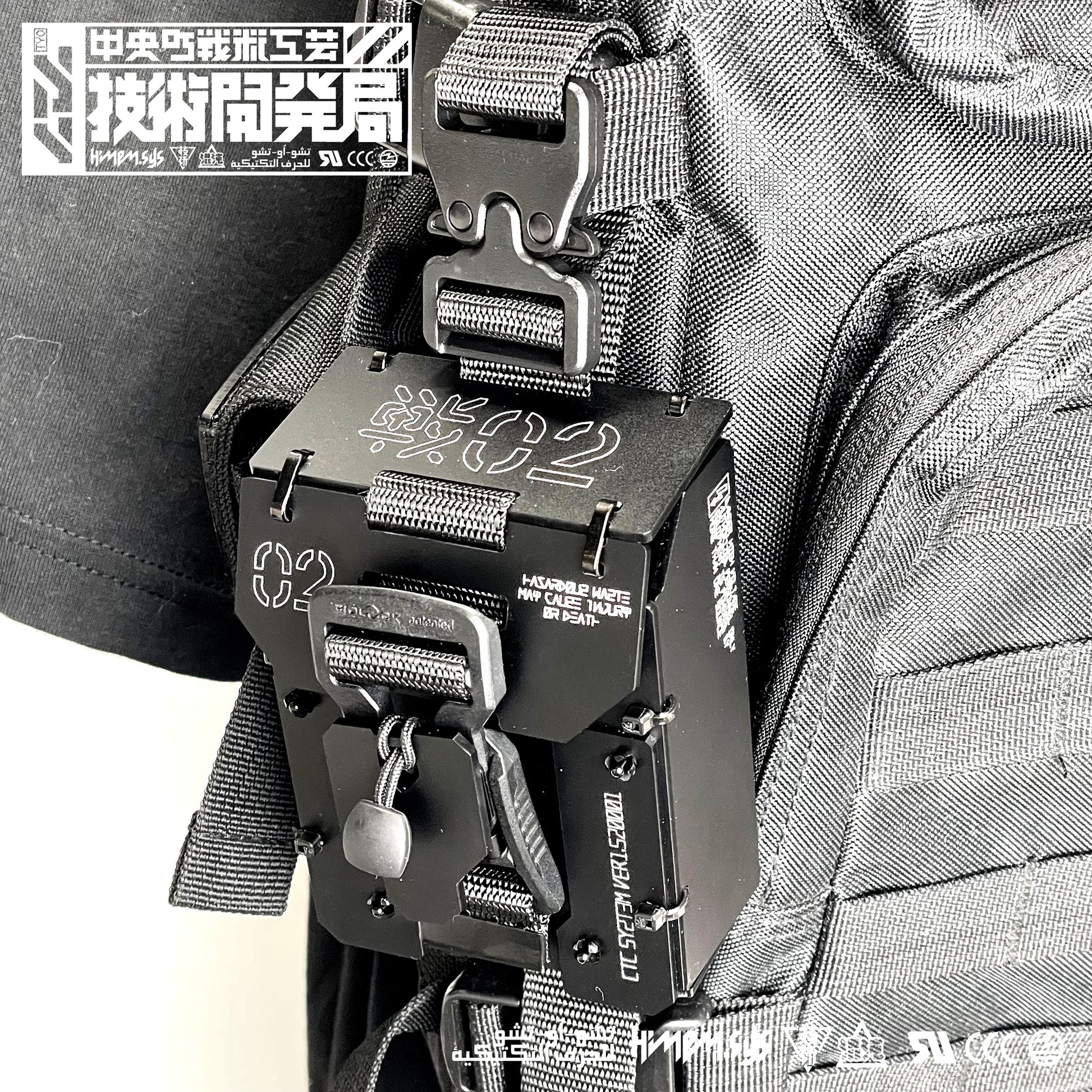 The magnetic buckle on the front can be unlocked by pressing the triangular part while pulling the strap.