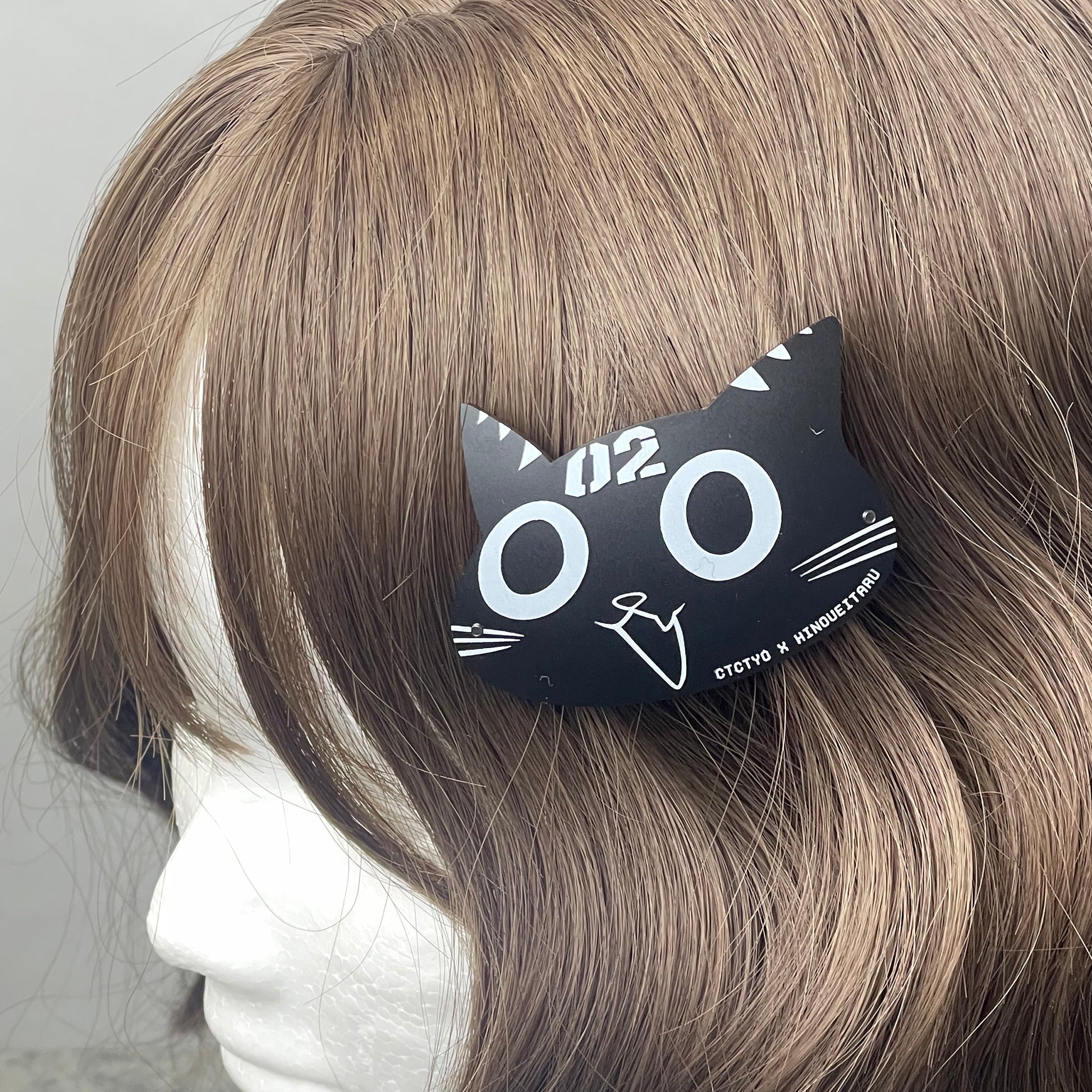 This acrylic barrette features a newly drawn cat version of her self-portrait that appears in her signature.