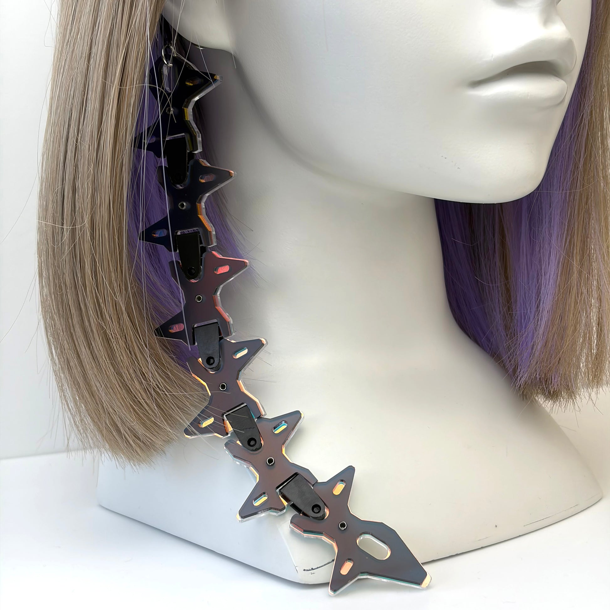A belt-like accessory made of acrylic parts joined with resin connectors.