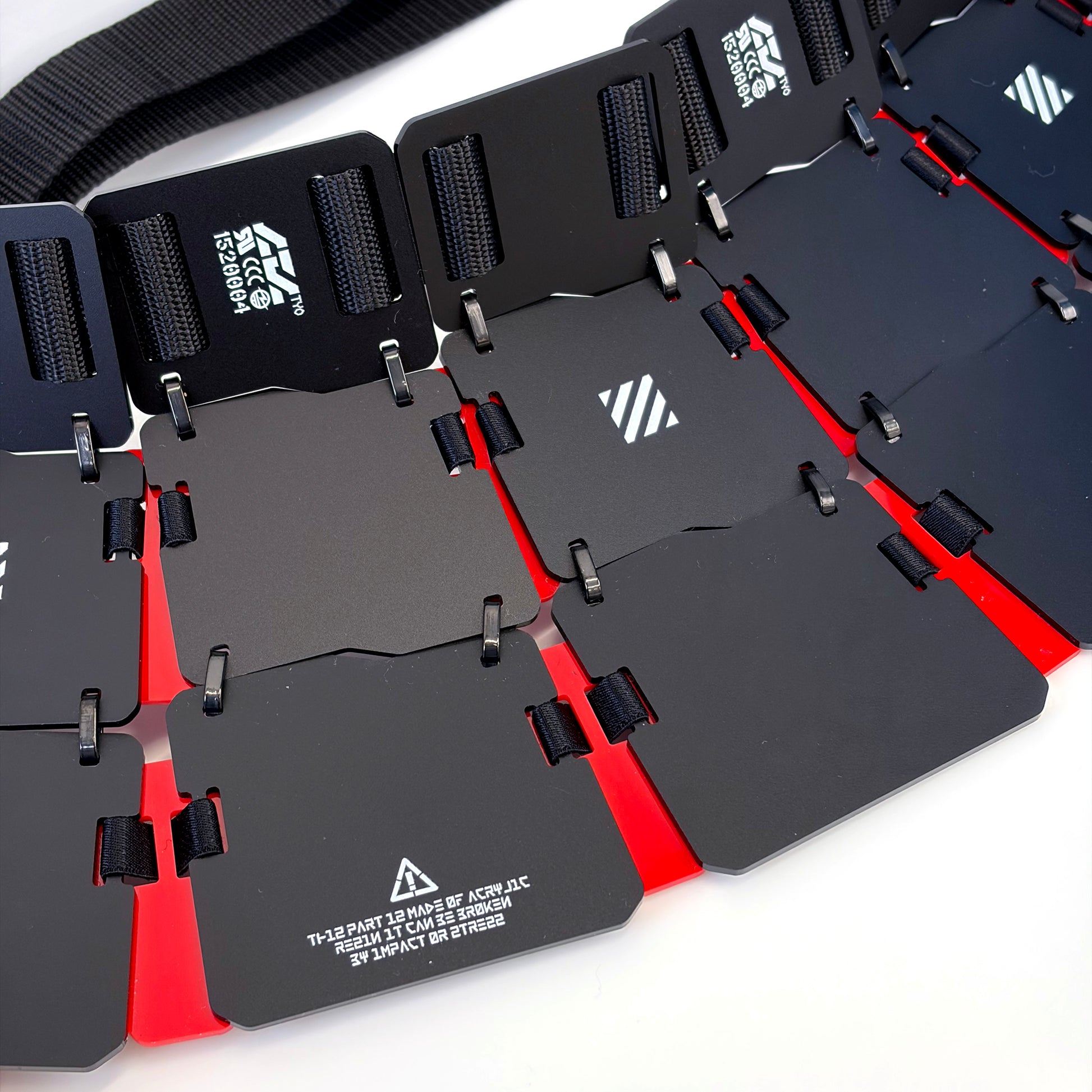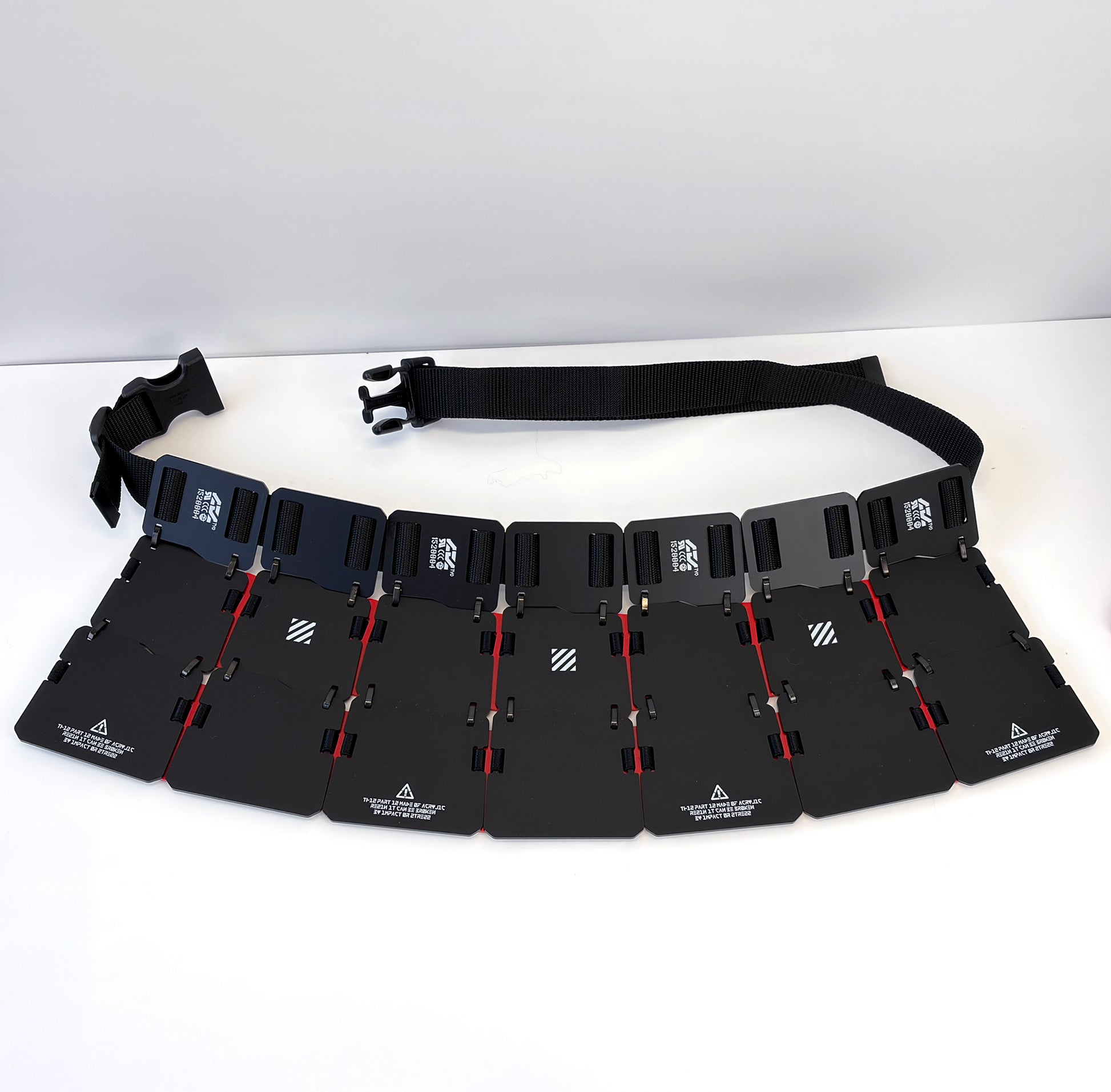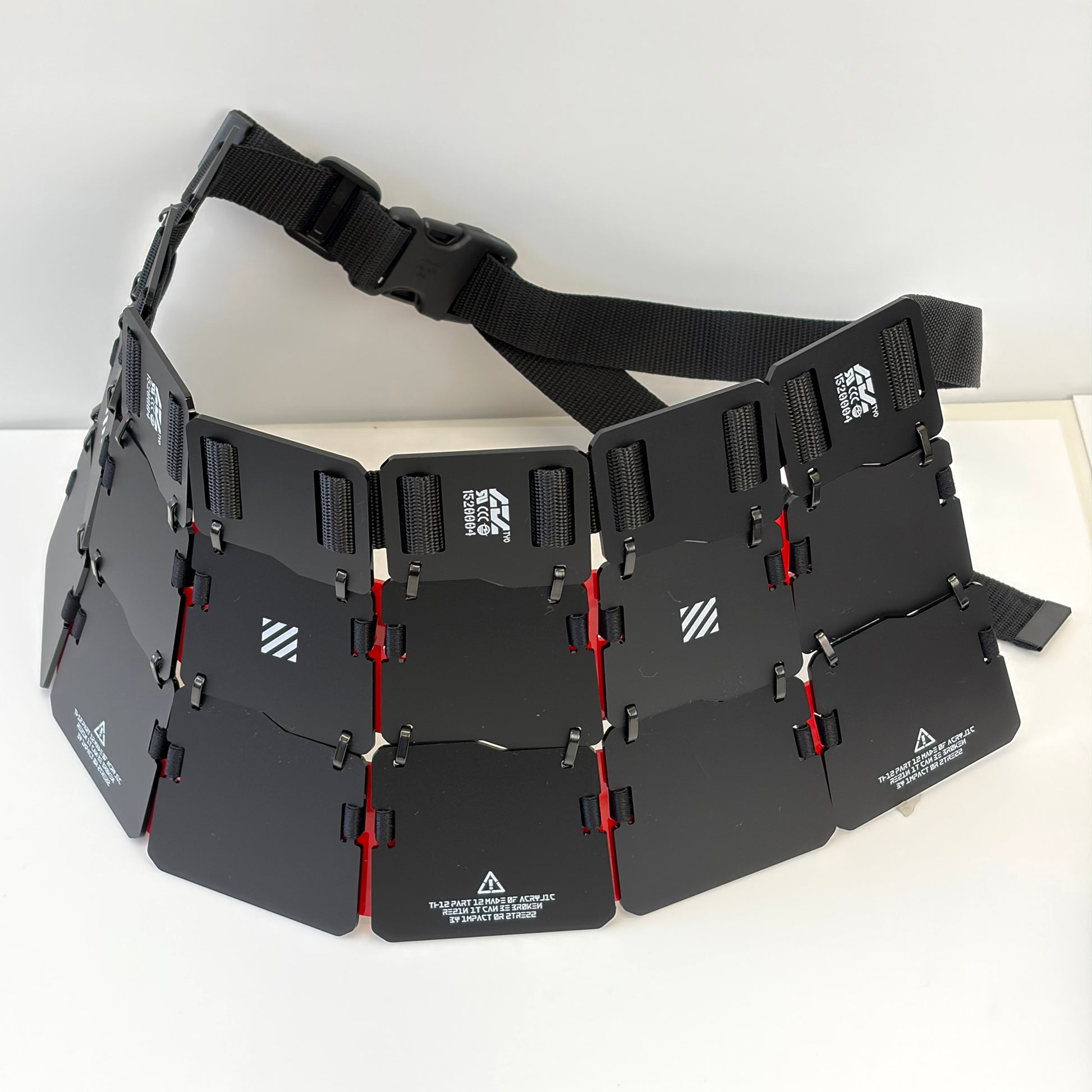 多数のアクリルプレートを伸縮性のあるテープで接合したスカート状の装甲アクセサリー。