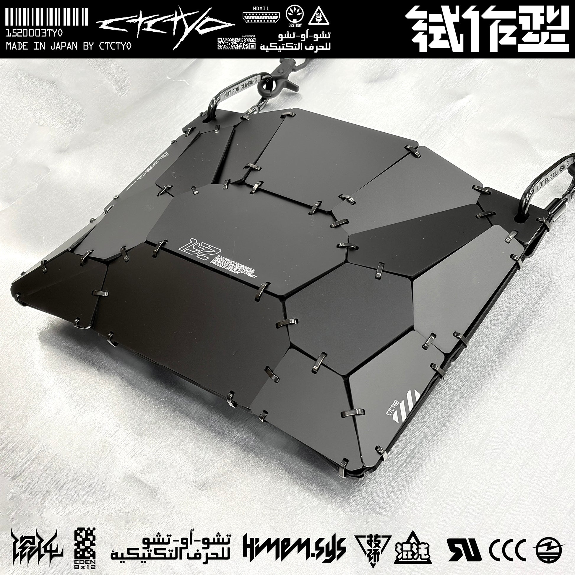 This armored sacoche bag is made from acrylic resin and was designed with panel dividing lines in mind, based on observations of how the bag's surface deforms when items are placed inside.